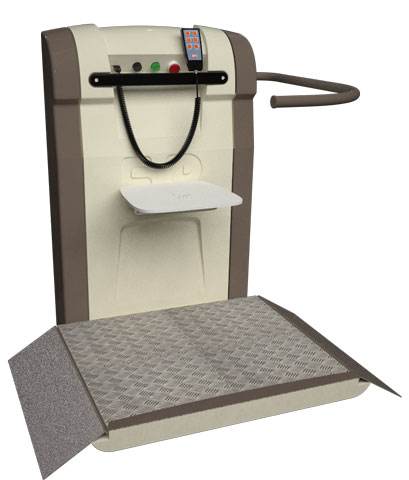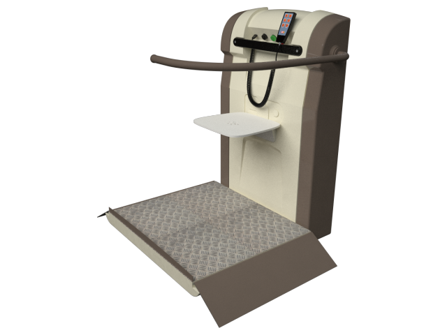 Este modelo de elevador acessível é um dispositivo mecânico projetado especificamente para transportar uma cadeira de rodas ou uma scooter motorizada. Isso permite aos usuários de cadeiras de rodas a oportunidade de se moverem livremente dentro de um prédio de vários pisos, enquanto leva a cadeira de rodas com eles, sendo totalmente independentes entre os andares.